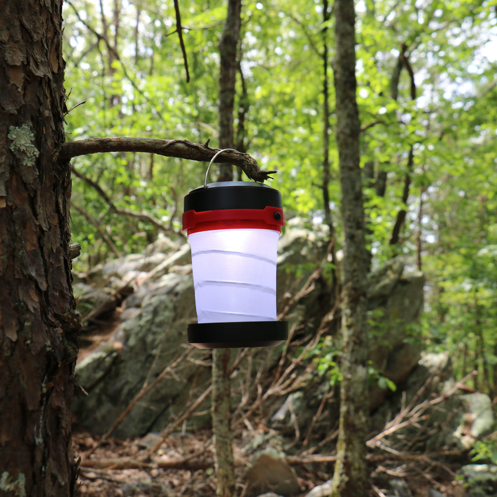 With all of this to consider, we have to say that the 3 Mode Solar Rechargeable LED Camping Lantern checks all the boxes (and then some) for us! It’s compact yet expandable, ultra-lightweight, rechargeable (solar and USB), and water resistant. I’ll be honest, the last time we used our camping lantern was when we had a 32-hour power outage and it was perfect to set on our bookcase at night (as opposed to the harshness of a flashlight used in similar fashion, or a candle that doesn’t provide quite enough light). It functioned as a light for the otherwise pitch-black family room where we were having our impromptu family campout. We love using it right in our own back yard as well as on all our family camping adventures. Lastly, we love it because it comes in a stylish black and red design – being from Georgia, we just love that color scheme – go Dawgs!